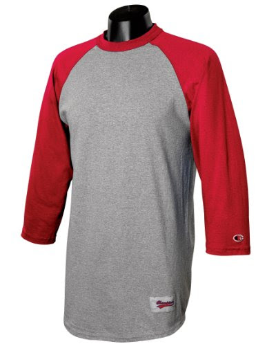 100% cotton; 3/4 raglan sleeves; double-needle stitching on sleeves and bottom hem; "C" logo on left sleeve; tagless; Oxford Gray is 90% cotton, 10% bale-dyed cotton.